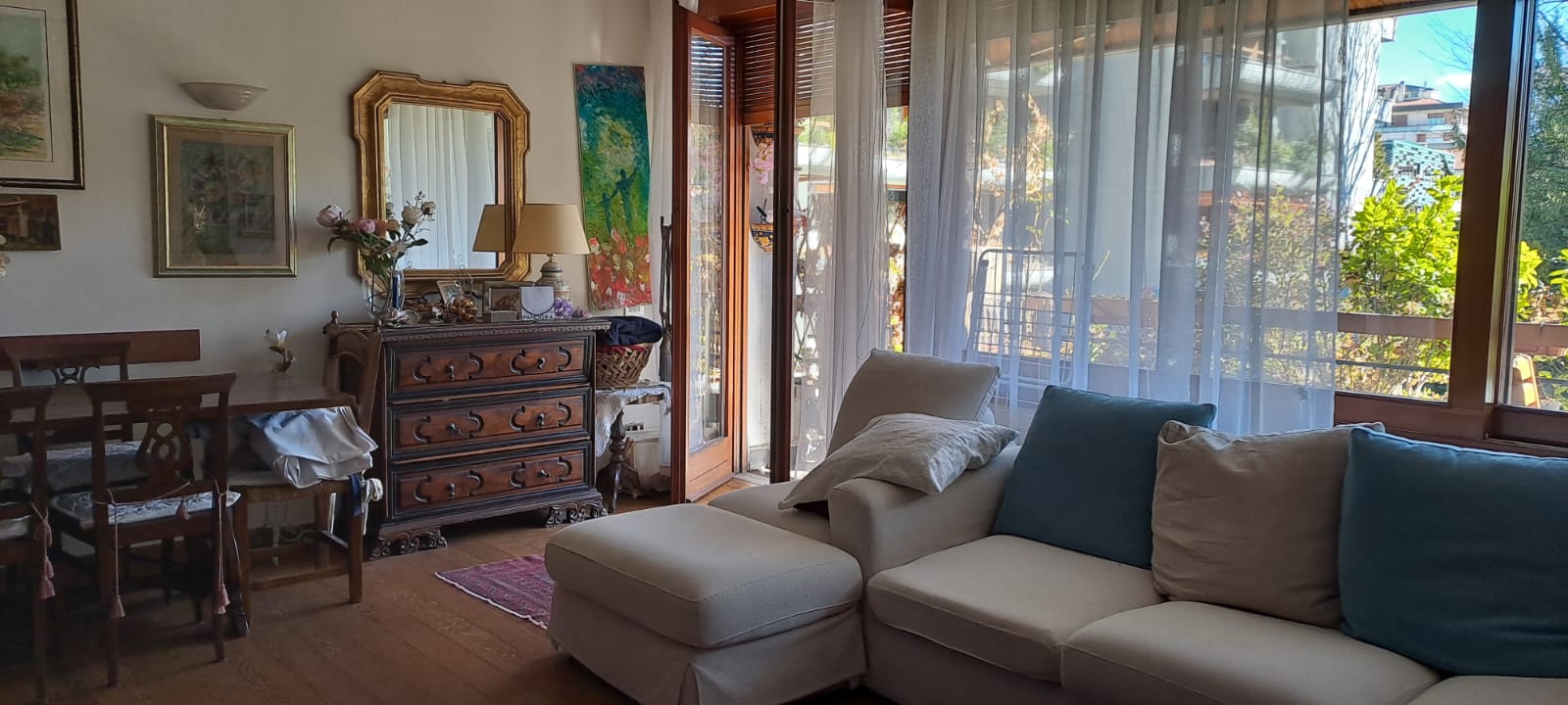 * doppio soggiorno con ampie finestrature e accesso al terrazzo con vista sul parco privato